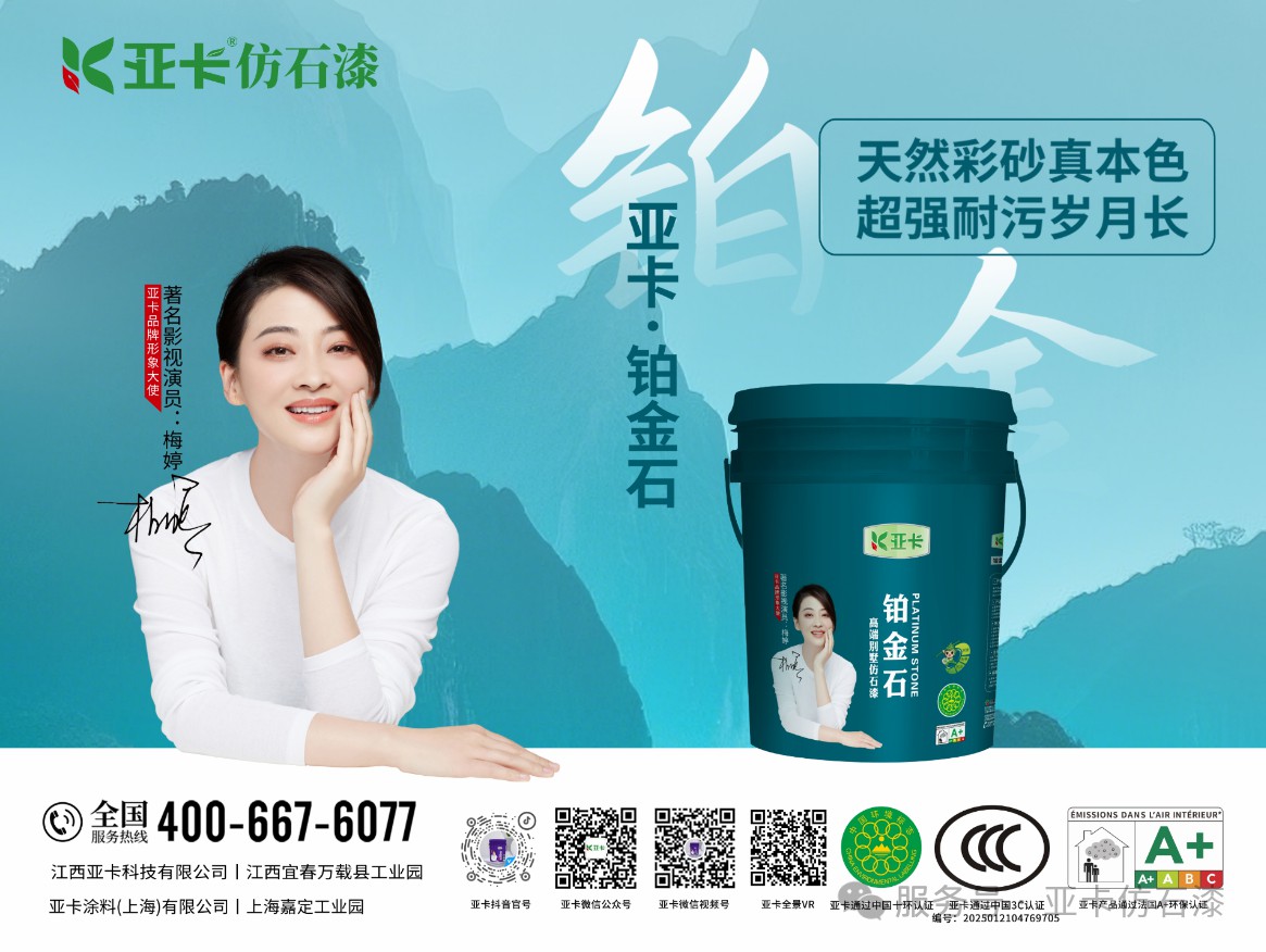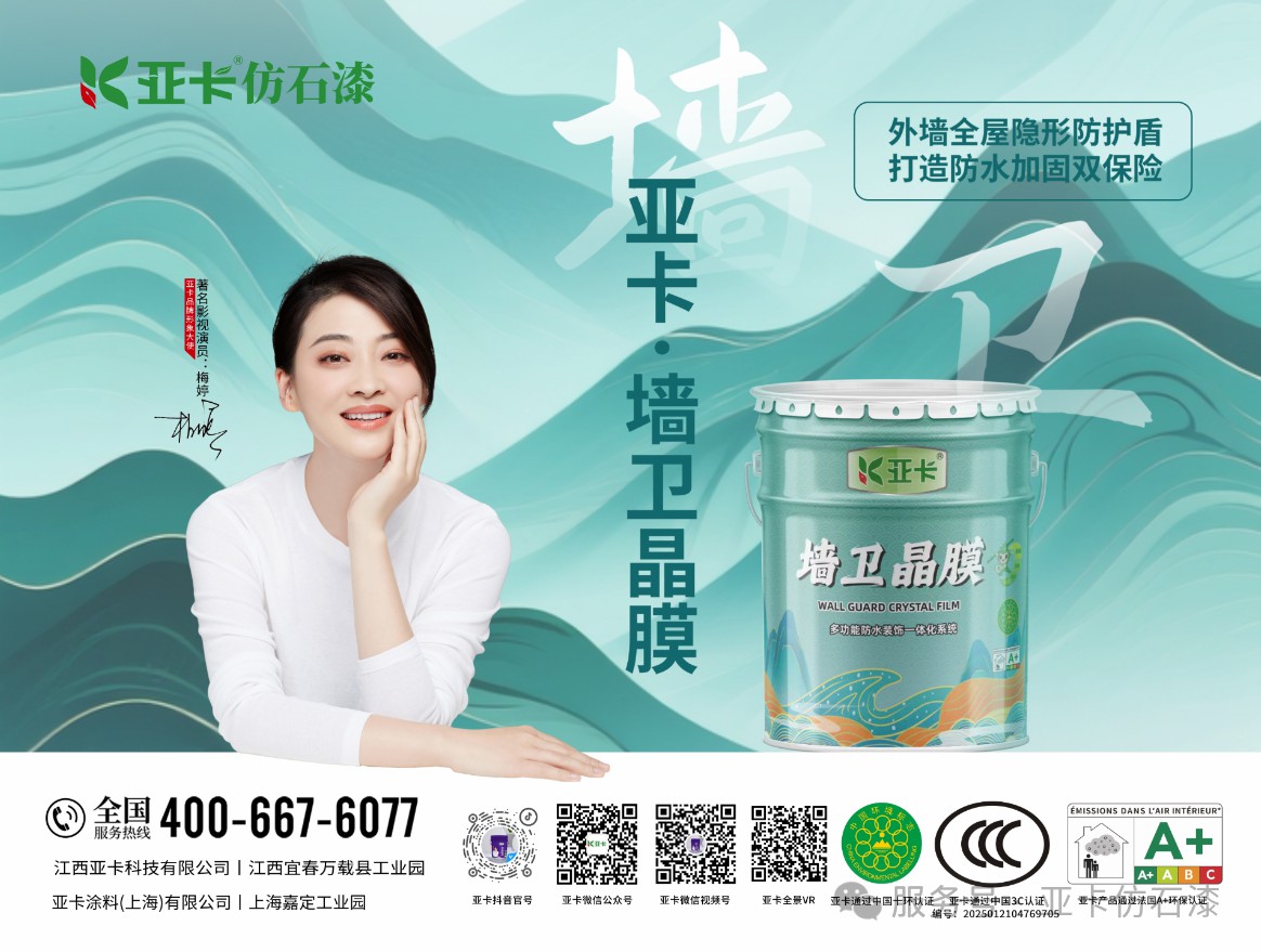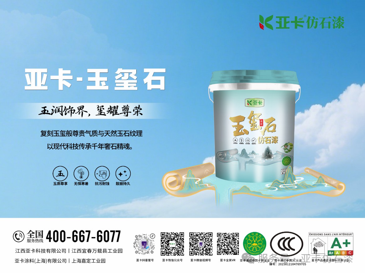 亞卡在產(chǎn)品研發(fā)方面聚焦鄉(xiāng)鎮(zhèn)自建房市場,對仿石漆系列產(chǎn)品持續(xù)進行更新迭代,突破天然彩砂調(diào)色難題,實現(xiàn)大理石紋理1:1還原,推出高品質(zhì)的亞卡鉑金石仿石漆;順應(yīng)國潮回歸的新時尚,在研發(fā)中融入玉石粉工藝,復(fù)刻故宮城墻質(zhì)感,亞卡玉璽石仿石漆于2025年4月全新推向市場。